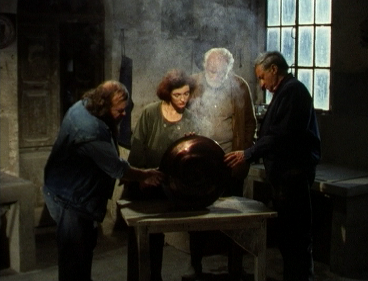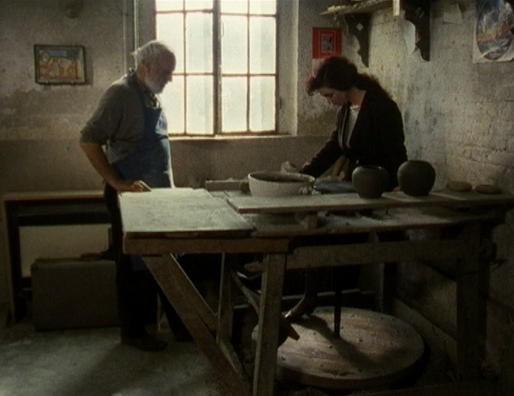 une scène du film DERUTAFiction fantastique, le film raconte l'histoire d'une jeune fille allemande, Kathérina, qui souhaite apprendre le secret de la poterie dans la ville de Deruta (Italie). Quand elle s'exerce au tour, elle est hypnotisée et accède ainsi à un monde "au-delà-des-mosaïcs". Elle y rencontre quatre potiers/alchimistes qui, pour aider l'humanité, avait créé un Golem. Cette créature de glaise s'est ensuite révolté contre eux et leur a volé la Pierre Philosophale. Menée par la jeune fille aux pouvoirs surnaturels, commence ainsi un voyage, une curieuse quête à la recherche de la Pierre Mhytique. Mais quand elle est retrouvée, les Hommes ne comprendront pas sa signification.