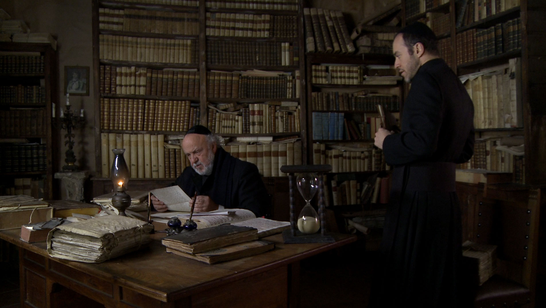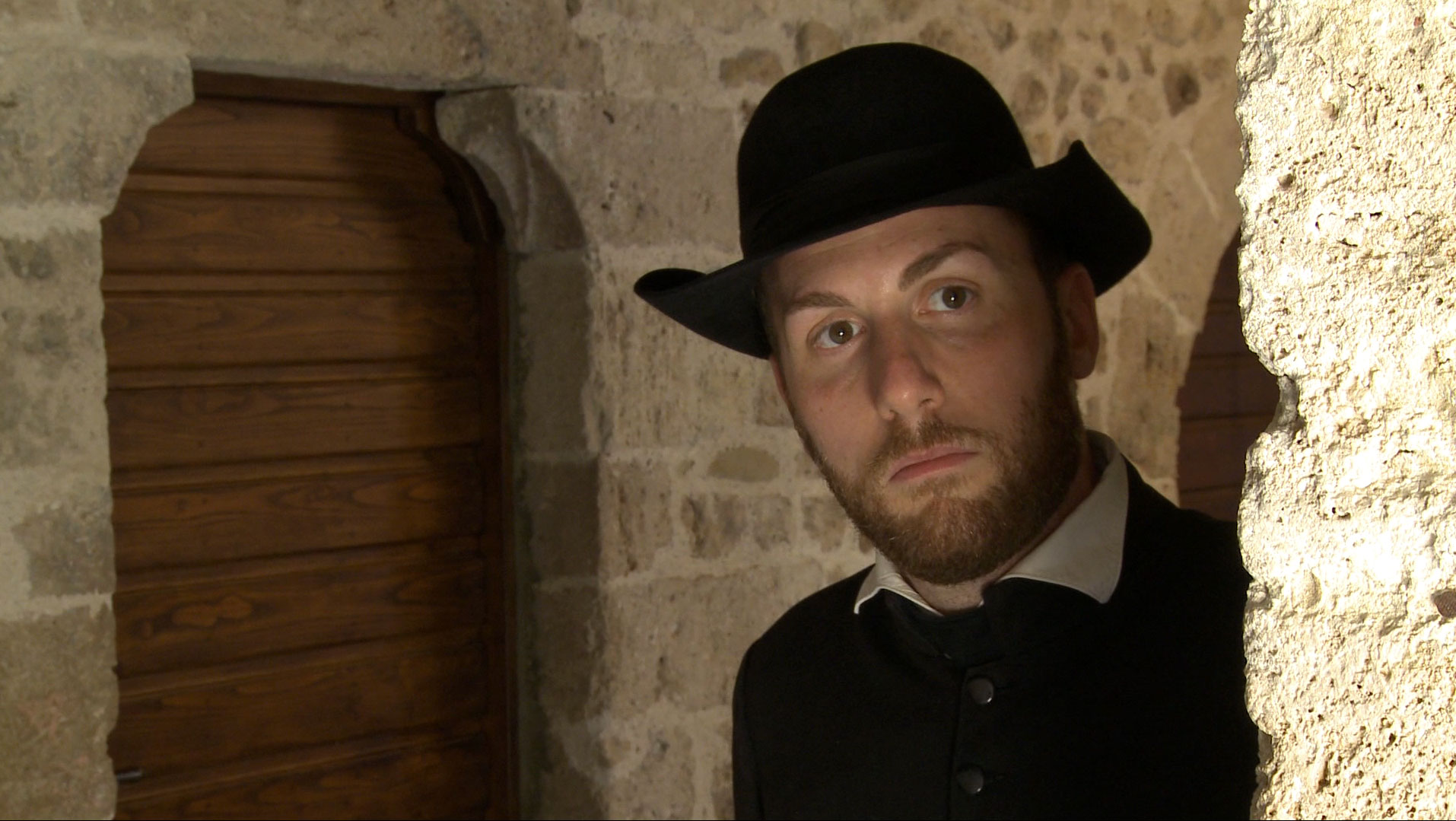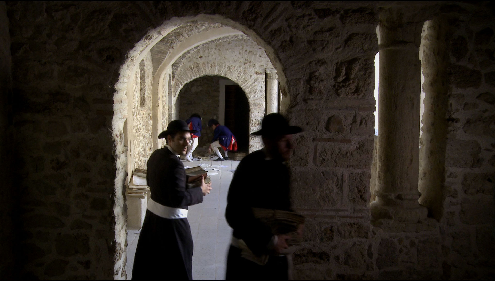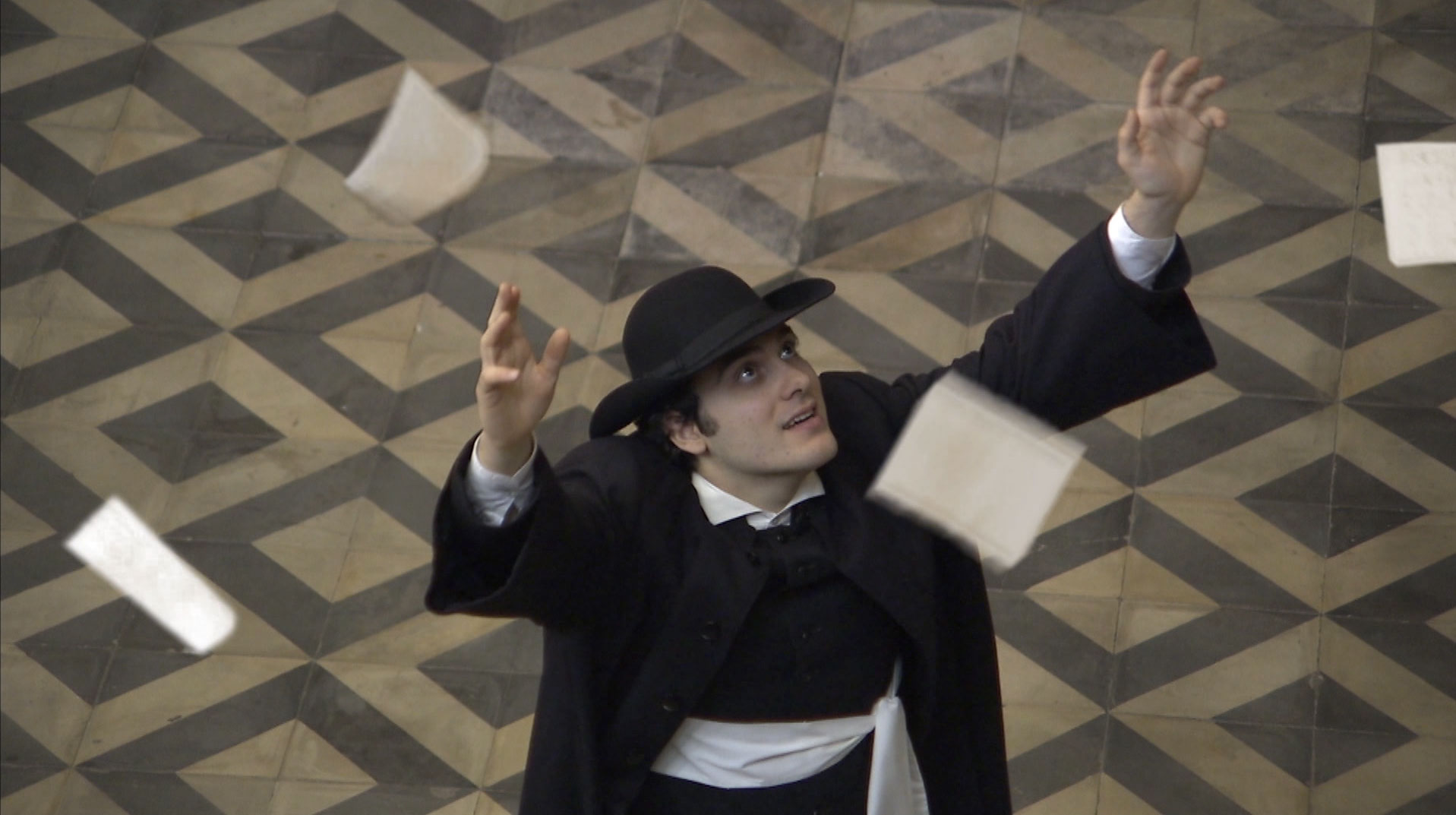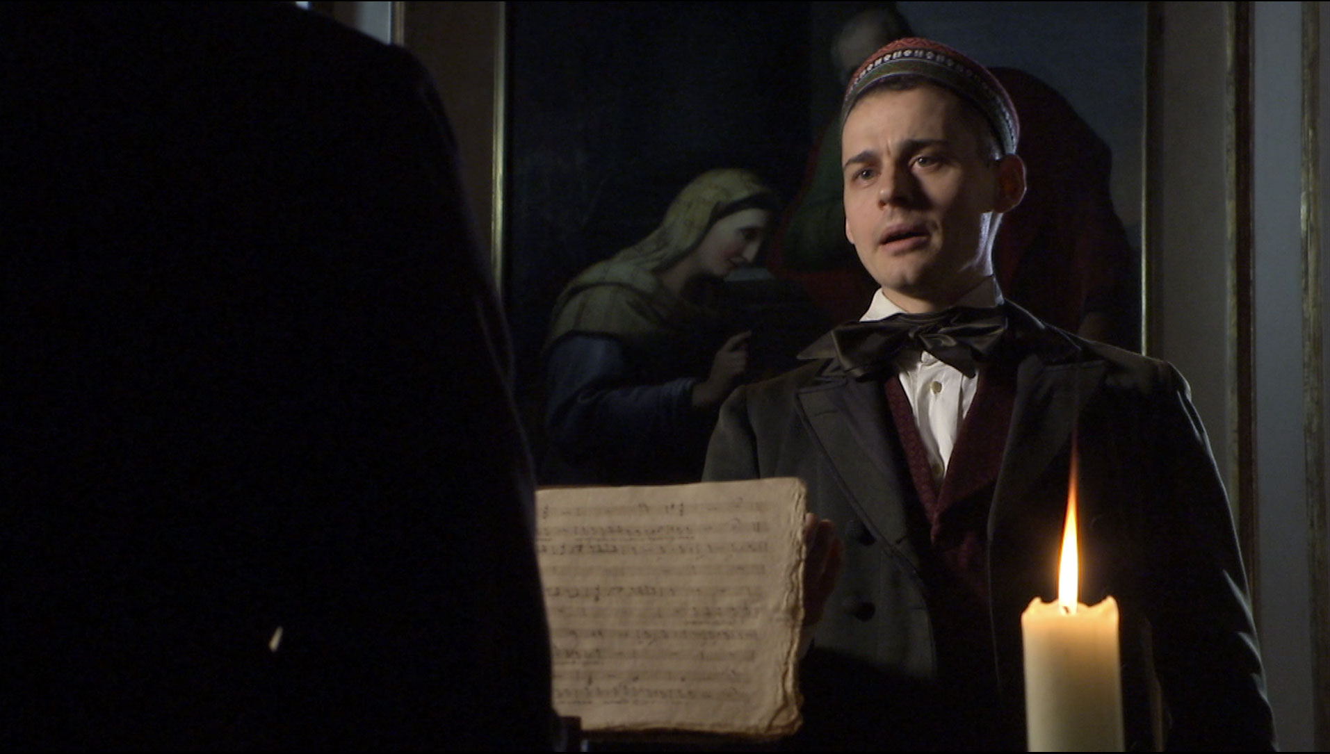 scena dal film LA RETE DI SANTINI Oggi, forse, sarebbe visto come un outsider, ma duecento anni fa l'abate romano Fortunato Santini (1778-1861) era considerato un personaggio invasato dalla musica. Fin dall'età di venti anni si impossessò di lui una passione profonda, una aspirazione irresistibile che poi divenne lo scopo della sua vita: collezionare musiche e cioè autografi o copie in manoscritto o stampate di musica antica, per sottrarle così all'oblio. Questo ambizioso progetto poté realizzarsi soprattutto a Roma, dove si trovavano centinaia di importante biblioteche sia private che ecclesiastiche, ma anche grazie all'aiuto di conoscenze e contatti dell'abate in Italia e all'estero. Il suo motto, infatti, era: regalare, commerciare, scambiare.